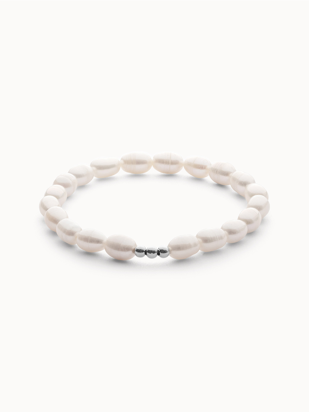 Složení: přírodní říční perla, kuličky stříbro ryzosti 925/1000, navlečeno na pružné gumičce
