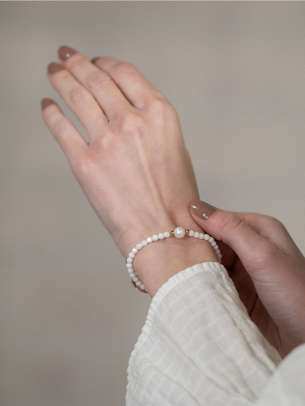 Broušený mléčný náramek s perlou