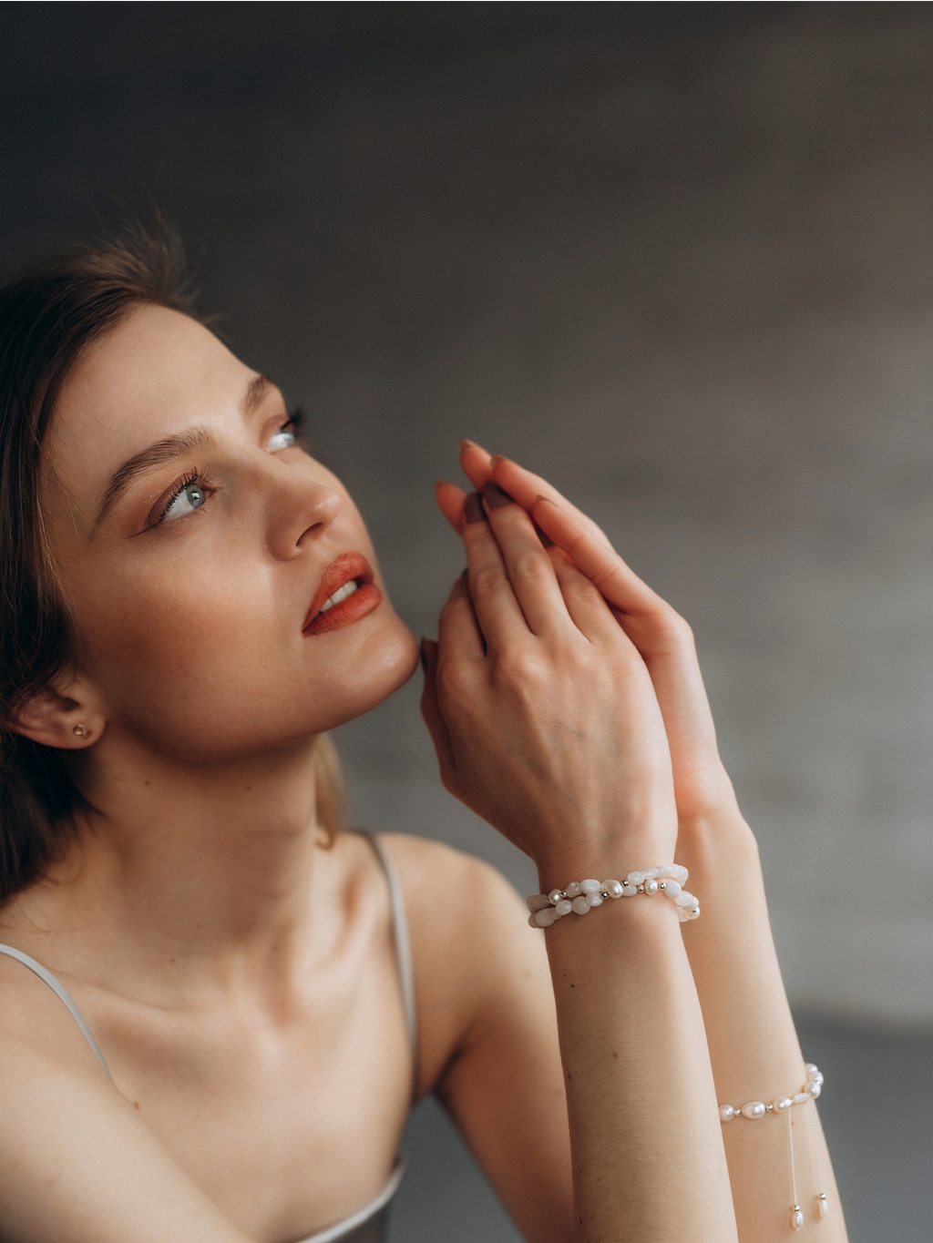 Perly jsou nadčasovým a elegantním doplňkem, který nikdy nevyjde z módy. Kombinace perel s minerálními nebo provázkovými náramky je ideální pro jakýkoli outfit. Perly jsou symbolem krásy a elegance a jsou oblíbené pro svou schopnost dodat jemnost každému vzhledu.