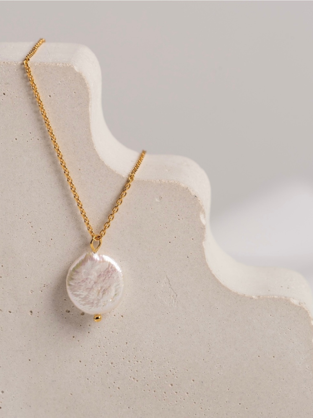 Jemná krása přírodního říčního kamene spojená s čistým leskem stříbra. Oblázková říční perla na stříbrném řetízku zaručuje eleganci a šarm pro každou příležitost. Vyjádřete svůj jedinečný styl s tímto šperkem, jehož jednoduchost a ryzost stříbra 925/1000 zlaceného 24kt zlatem přináší do každodenního života odraz přírodní krásy.