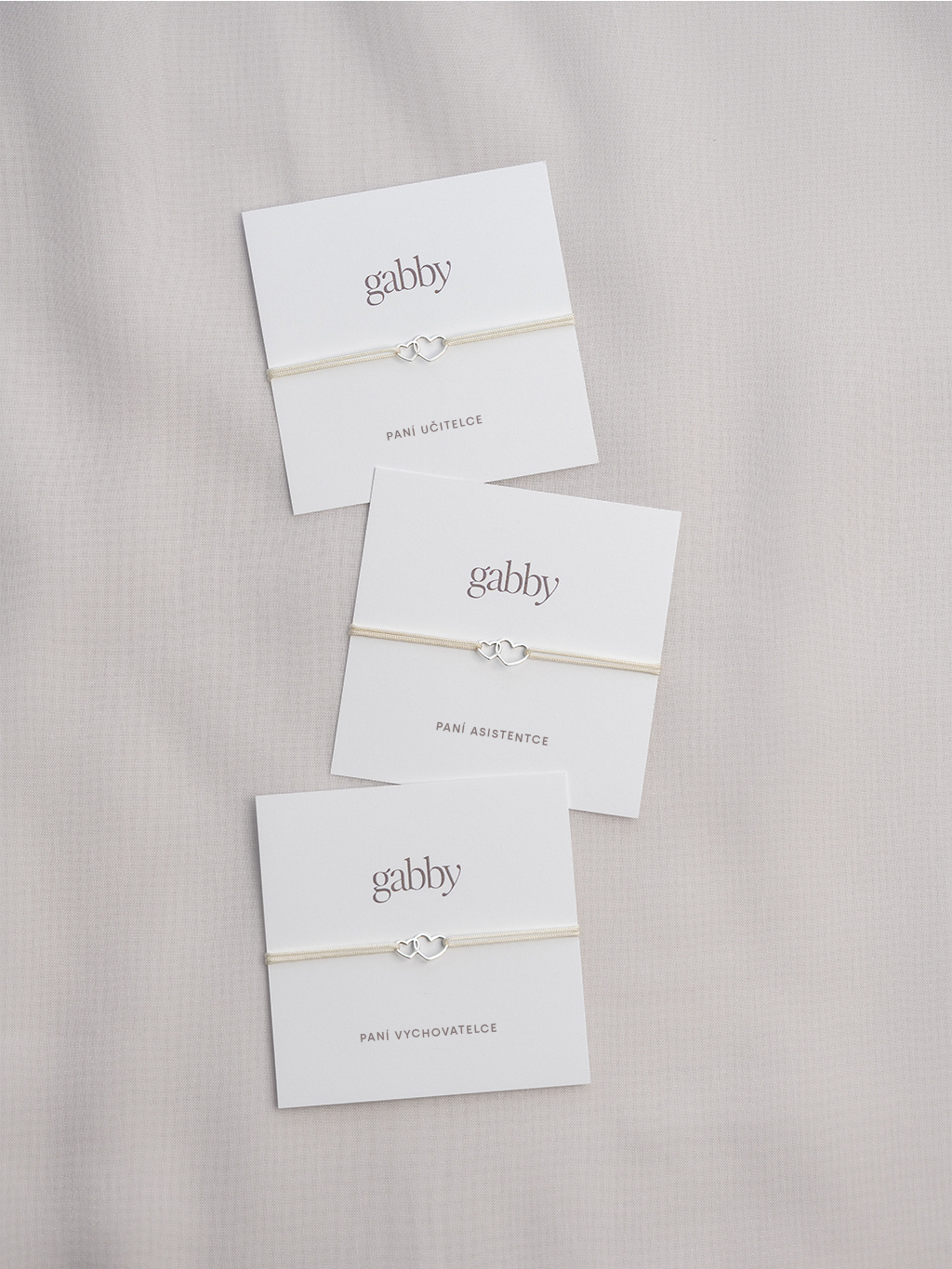 - provázkový náramek 1 ks "Paní učitelce", 1 ks "Paní asistentce" a 1 ks "Paní vychovatelce" na nylonovém provázku včetně dárkové kartičky viz. ilustrační fotografie,