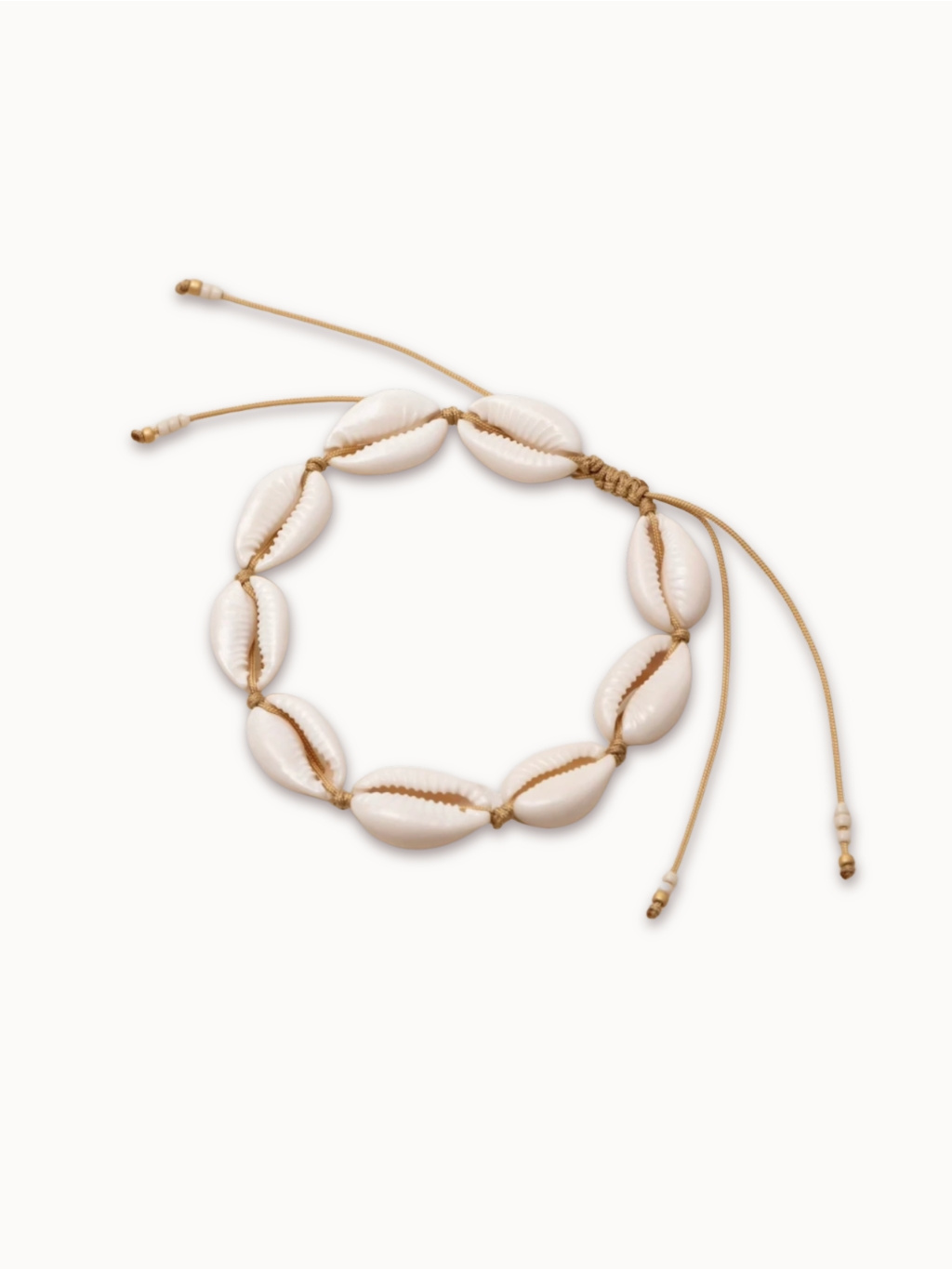 Náramek z mušliček je skvělým letním doplňkem, má posuvné zapínání a bude skvěle vypadat s dalším minerálním či provázkovým náramkem. Je vyrobený z drobných přírodních Kauri mušlí opletených nylonovým provázkem a jednotlivé mušličky jsou odděleny uzlíkem.