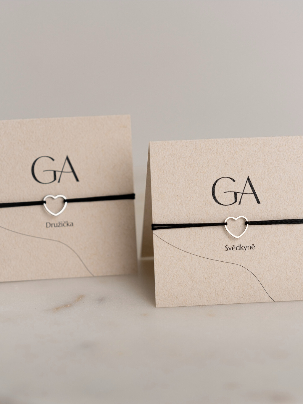 - provázkový náramek "Svědkyně" a náramek "Družička" na nylonovém provázku včetně dárkové kartičky viz. ilustrační fotografie,
